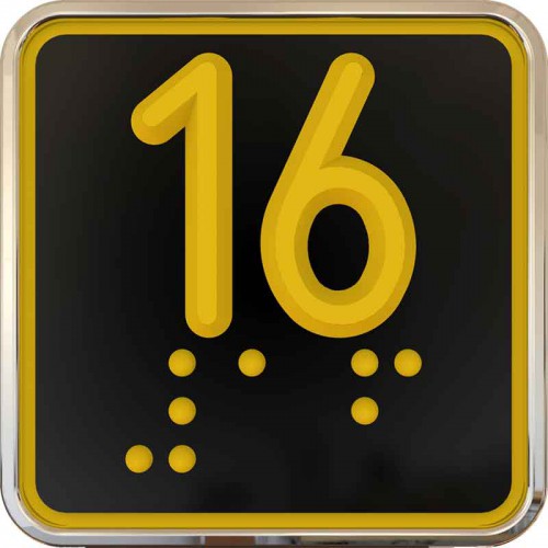 The square shaped US96-EN Braille pushbutton meets all the requirements of the visually impaired. The wide tactile legend can be easily seen from all angles and can be illuminated in a variety of colours. The Braille dots below the legend are Standard English Braille. The pressel back ground is black, providing good contrast with legend and faceplate and meets the requirements of EN81-70.